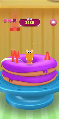 注意啦,前方会出现各种障碍,有些可不是一动不动的,而是会活动的叉子。偶尔还会碰到两个静止的障碍物挨在一起,把中间的通道给堵住。不过别担心,解决办法超简单,找准时机,快速旋转到通道那里就行啦。