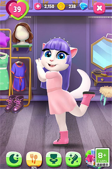 2、个性化定制:玩家能够借助自定义设置,对安吉拉的外貌以及生活场景进行设计,从而体验个性化宠物养成的独特乐趣。