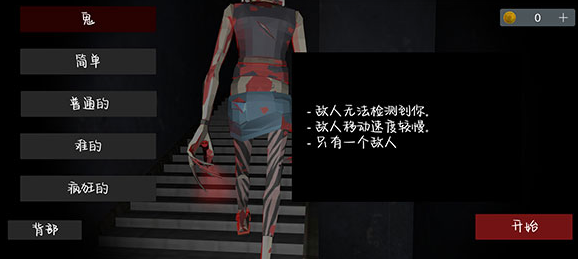 2、选择游戏难度,可从鬼、简单、普通、难、疯狂五个难度等级中自主选择。