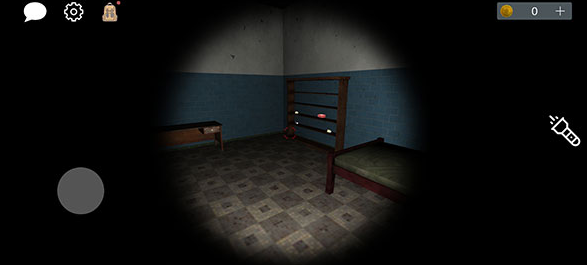 4、游戏初始阶段,玩家持有可关闭的手电筒,界面左上角设有聊天、设置和背包功能入口,背包用于存放游戏过程中收集到的线索与道具。