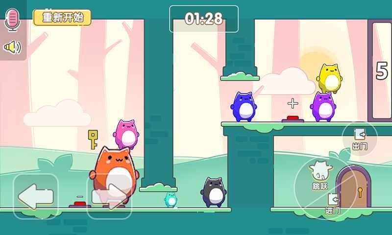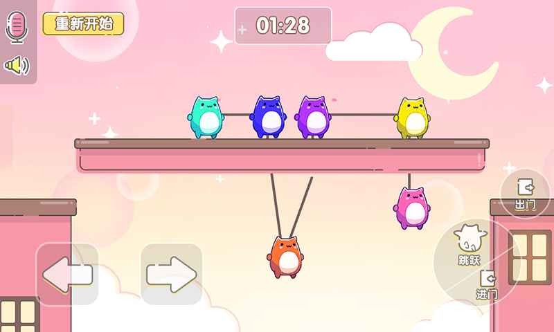 萌猫乐园联机版是一款超好玩的休闲益智闯关类游戏。其角色形象卡通Q萌,可爱至极,还设计了海量关卡内容。游玩时,我们能选择联机模式,邀请好朋友一同加入。大家的最终目标是把所有猫咪送到目的地,这就需要玩家之间默契配合。