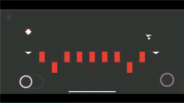 7、来到第七关,首先向上跳起,触碰上方的开关。待机关出现后,向下跳跃以激活下方的机关。随后,把中间以及右边的白圈激活,如此便能开启全部机关,接着便可正常通关。