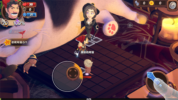 7、用手指在屏幕上的圆盘处滑动,以此控制移动方向,右侧设有攻击按键;
