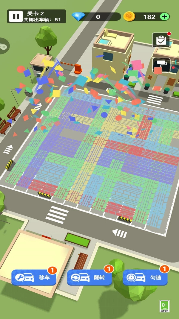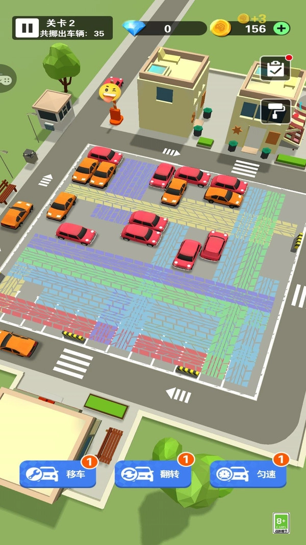 2. 道具功能辅助:在游戏过程中,你可以利用“移车”“翻转”“勾速”等技能按钮,助力自己顺畅挪车、调整方向,从而困局,顺利通过关卡。