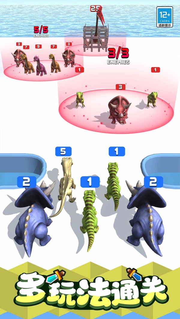 1、这款恐龙战斗闯关游戏趣味十足又很好玩,只需灵活地用手指点击操作就行;