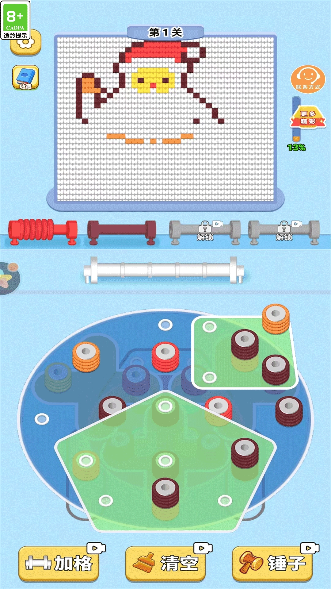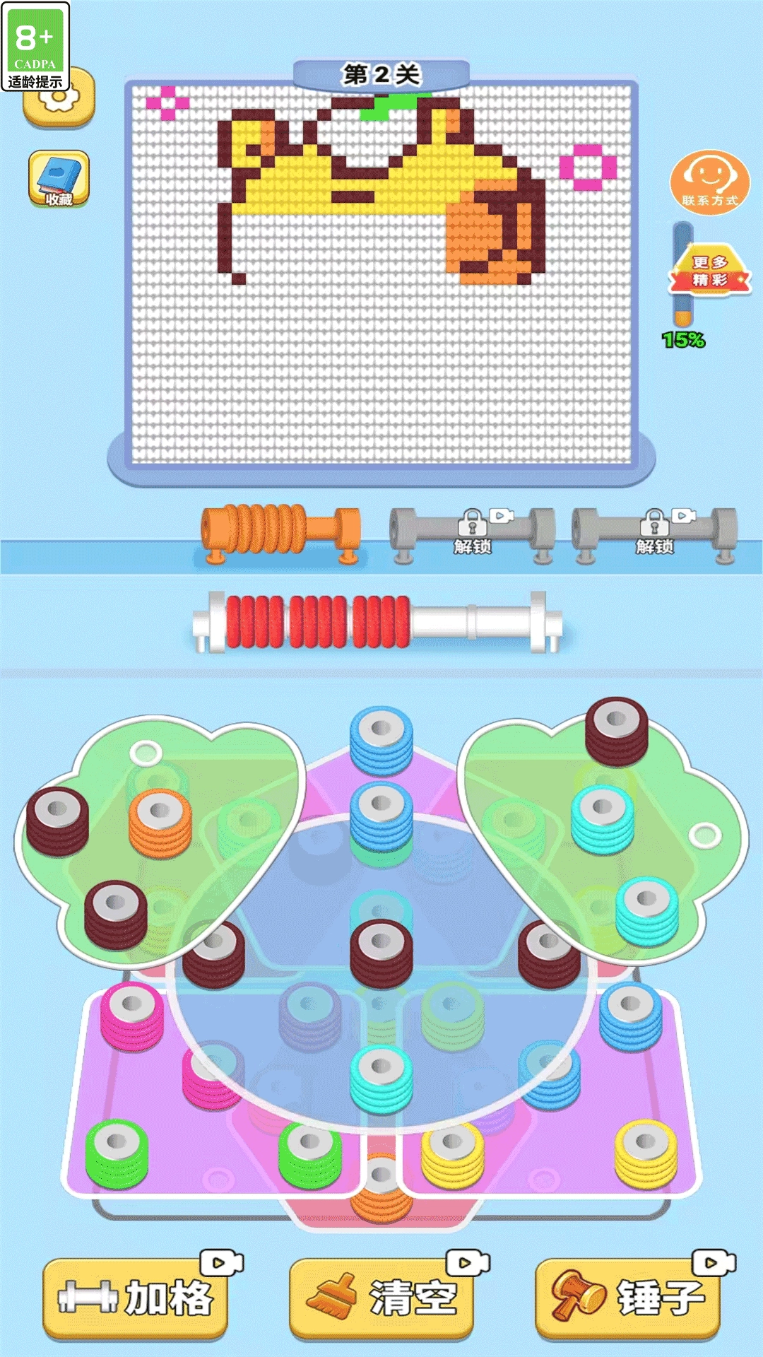 1. 游戏的核心机制与改良版拧螺丝玩法相似,玩家可通过旋转丝线轴,让其与相邻的同色丝线实现对齐。