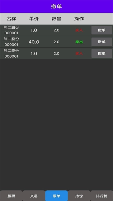 2、支持玩家在交易流程中发起撤单操作,该功能能够协助玩家适时调整交易策略,从而降低潜在损失。