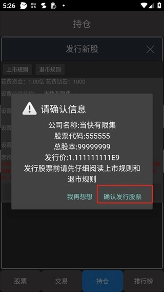 4、点击确认发行股票。