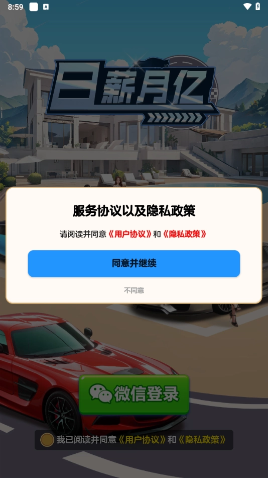 3、点击微信登录,注意勾选用户协议和隐私政策