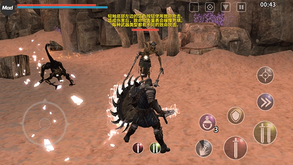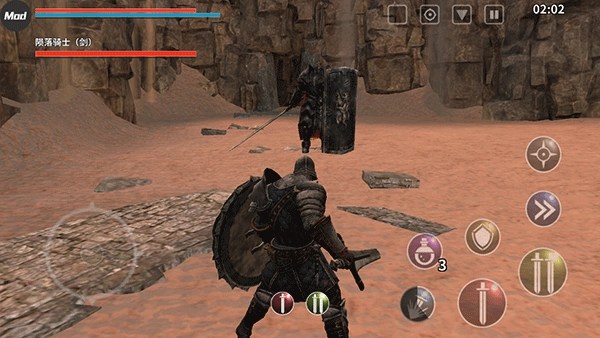 2、进入游戏后,玩家将化身一位勇敢的骑士开启冒险之旅,左侧负责操控移动方向,右侧则可进行攻击、释放技能等操作;
