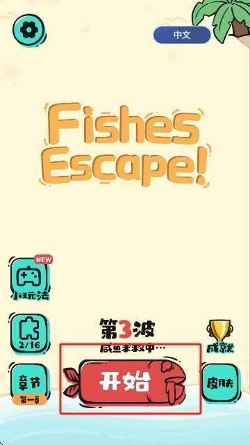 1、点击“开始”按钮,就能正式进入游戏,开启你的解谜闯关之旅。在此过程中,你需要充分运用自己的智慧,助力咸鱼顺利完成逃离。