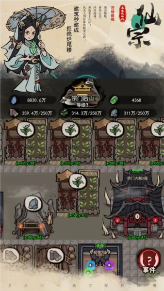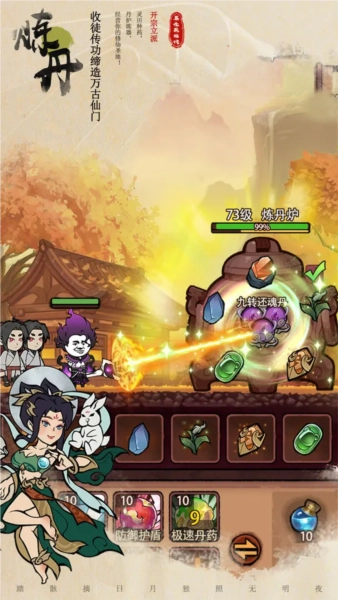 3、前期建议优先推进主线任务,尽早开启宗门并建造相关设备,同时优先通过炼丹来提升境界,这几点都比较重要。
