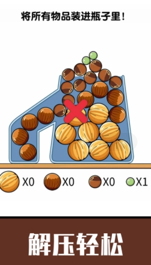 空瓶子游戏是一款十分考验玩家脑力的休闲小游戏,游戏里有各式各样奇形怪状的瓶子,玩家需要开动脑筋,把所有干果都放进瓶子中。游戏体验轻松欢乐,操作方式简单易懂,完成更多放置任务就能获得丰厚的惊喜奖励。玩家只需灵活操控指尖,就能尽情闯关冒险,赢取更多惊喜好礼。