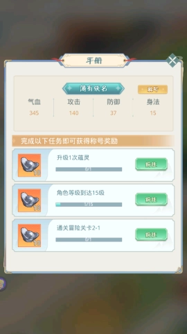 5、点击屏幕下方的手册,你可以领取指定任务,以此获取游戏内的称号,体验更深入的玩法。