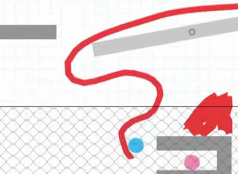给你一支笔,你想怎么画就怎么画,只要让两个小球相遇相爱,这样你就能过关了。