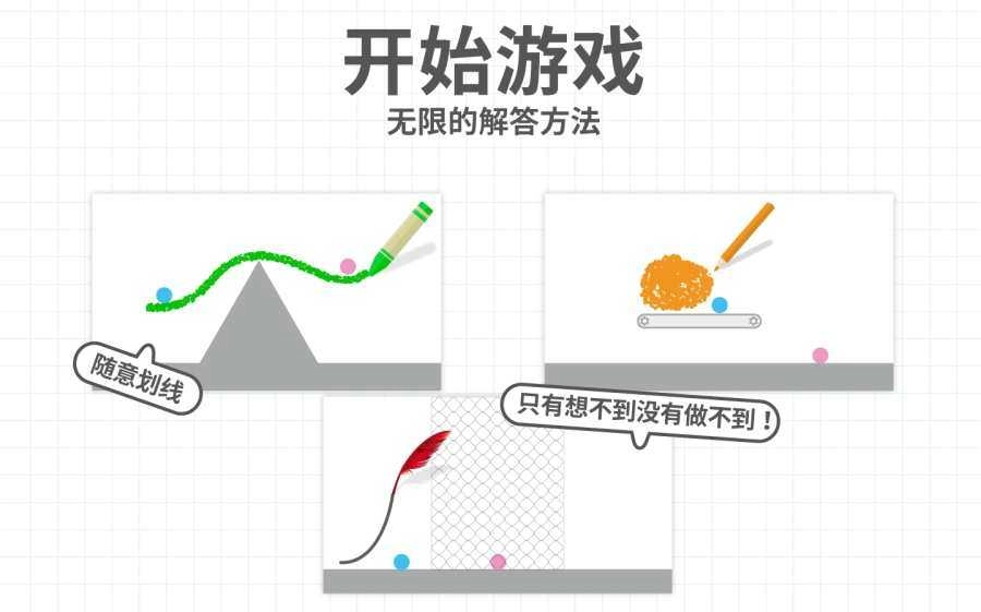 游戏的规则很简单,若想顺利通关,只需让蓝球与红球发生碰撞即可。你可以自由地画出线条,引导球滚动,而你的想象力将成为通关的关键所在。
