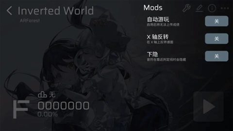点击界面右上角的扳手形状图标后,您会看到三个模组相关的选项,分别是:自动游玩(Autoplay)、X轴翻转(即左右镜像功能)以及下隐设定。