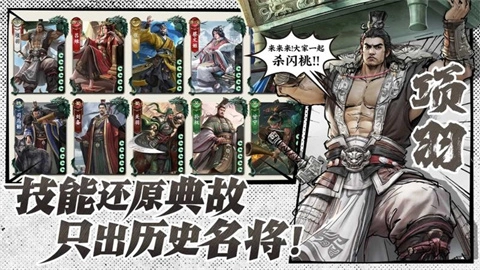 4、游戏依托古代历史构建背景,所有武将卡牌均取材于真实历史名将,不存在虚构的无名角色;技能设计灵感源于经典历史典故,写实且精致的卡面生动还原了历史上的经典场景,旨在全力提升玩家的历史代入感。
