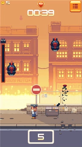 2、这款游戏采用像素化风格打造,呈现出卡通化的画面效果,操作方式十分简便。玩家在游戏过程中,需要借助手中的公文包来保护自身安全,同时通过左右移动的操作来躲避不断落下的炸弹。