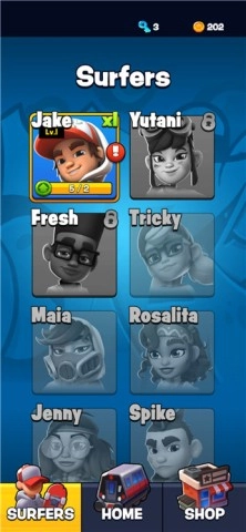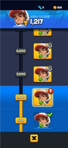 6、游戏得分越高,能拿到的升级奖励就越多,每个角色都具备独特技能。像杰克的阶级技能就包含磁铁、捡金币给滑板充能这类效果。