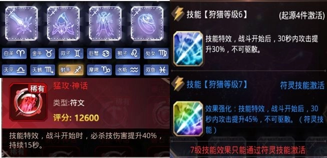 射手座套装效果和符文猛攻的效果是一类的,都是30秒内大幅度提升攻击力,天然适合技能爆发高,追求一次秒杀效果的英雄