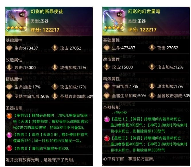 圣器方面,幻世星穹以及断罪使徒无疑是必备的,在让阵容的减怒能力更胜一筹的同时也不缺少伤害。