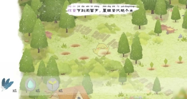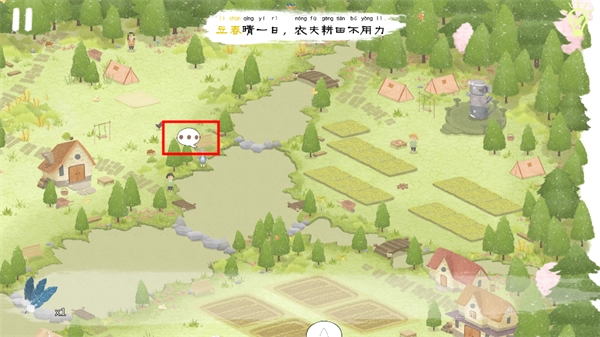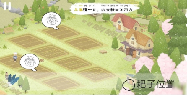 日子到了立春,但是左下的农民大叔犯了愁,因为田地的上空乌云密布。点击乌云,驱散后继续点击,直到乌云完全消散。