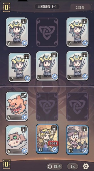 游戏的基础规则被做到了极致简化,在延续传统CCG游戏里加减法战斗公式这一核心的前提下,将攻击与生命这两个属性进行了合并,这样一来你就能更轻松地计算和预判自己或对手接下来的行动走向。只要你能够灵活运用加减法,就具备成为游戏高手的潜力。