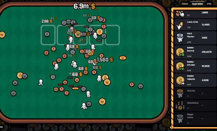 2、持续点击硬币以获取更多收益,点击右侧的物品能够解锁助手和更多硬币。