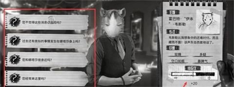 4、点击盘问后,可向对方提出各类问题,再依据侦探仪来判断其是否在说谎。