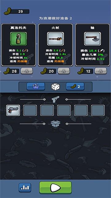 2、玩家将化身为一根腌黄瓜,这根腌黄瓜具备自动射击的能力,同时还拥有一个闪避技能。