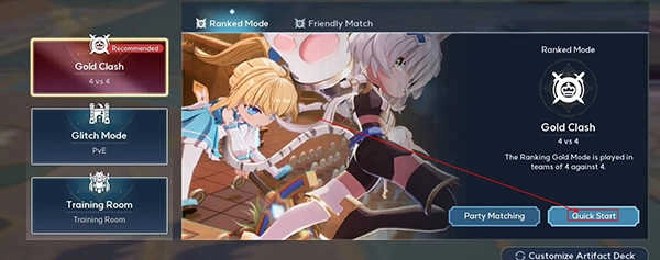 玩家可以选择“Gold Clash”进入4v4竞技模式,点击右下角的Quick Start即可开始游戏啦。
