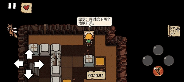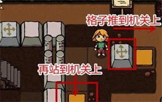 5、来到最后一个洞穴,需将其他角色推到旁边的机关上,自己再站到另一个机关位置,此时木柱会下落,门随之打开即可通关。