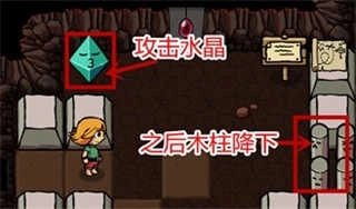 4、用木棒猛击两块水晶,中间的四根柱子就会缩入地下,进入后会遇到一头野猪,需用木棒将其击杀,随后门便会开启。