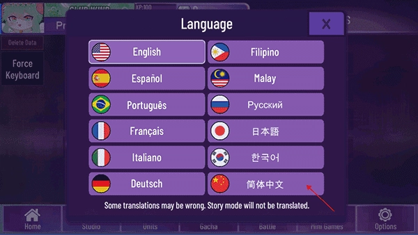 1、进入游戏内的“options”设置界面,找到“language”选项;