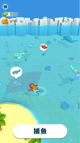 2.可以去探索海域,捕捉一些海鱼、虾、蟹以及各种神秘物种放置在水族箱中