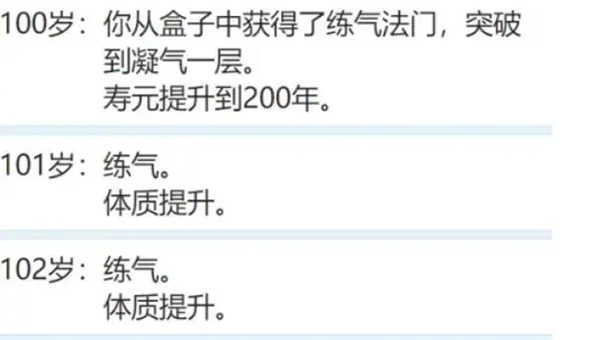 第二步:玩家选择这个天赋后,需要活到【100】岁,然后可以激活开启神秘小盒子的天赋,即可进入修仙模式;