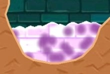 这种材质呈蓝灰色,质地坚硬无法直接凿开,需借助炸弹,或是将毒水与泥浆混合后才能炸开(不过神秘鸭和巨鸭具备凿开硬石头的能力)。(其结构图对应的颜色参数为:普通色值71、71、71,高光色值160、160、160,阴影色值40、40、40)