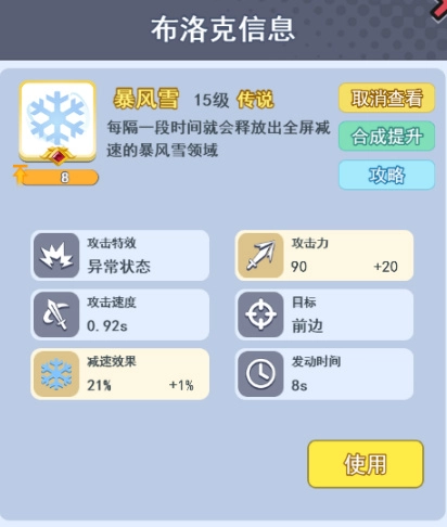 暴风雪布洛克是这套阵容中唯一一个传说布洛克,每隔8秒就会释放全屏减速的暴风雪领域。