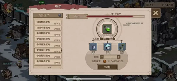 更高级的配方则需要去到更远的大陆进行购买。有了对应的配方后,也是需要集齐对应的材料才可以炼药。