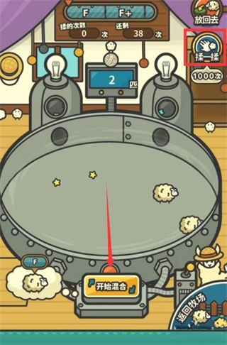 4、接着在羊驼的合成小屋中,我们可以选择点击揉一揉来提高合成羊的质量,这里我直接点击开始混合;