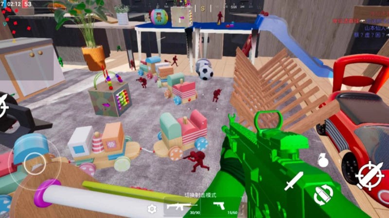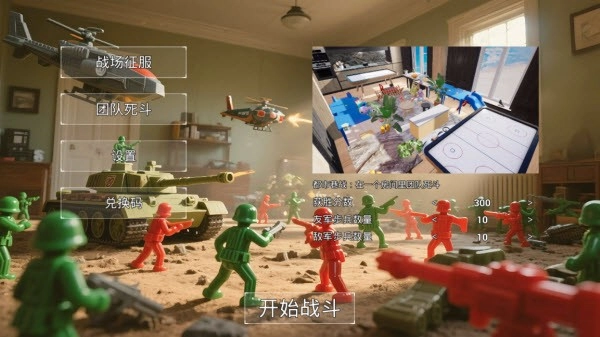2、战场征服模式:多个房间的争夺对战,玩家可部署玩具坦克与玩具直升机参与战斗。