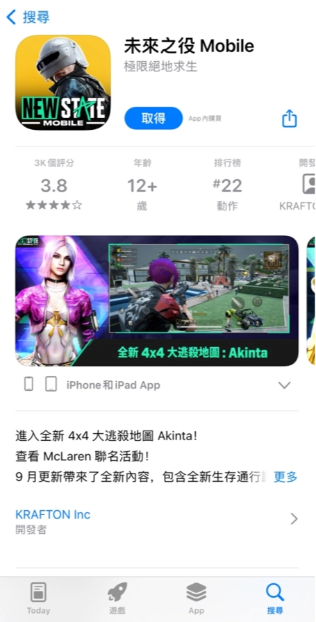 -苹果手机ios系统用户无法在国区 store未来之役,请使用其他地区的le id(自行注册)登录 store,搜索未来之役并获取安装(如下图);