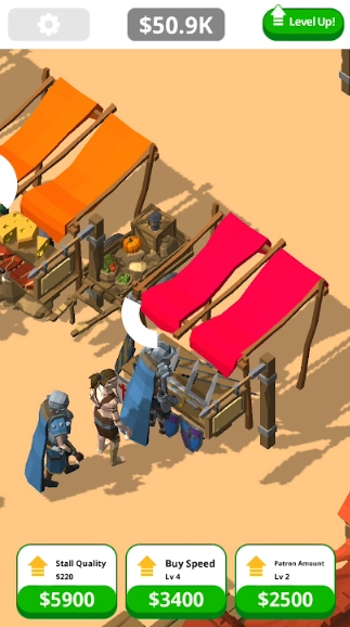 放置以获取更多金币,扩张店内设施,强化销售和收获能力。