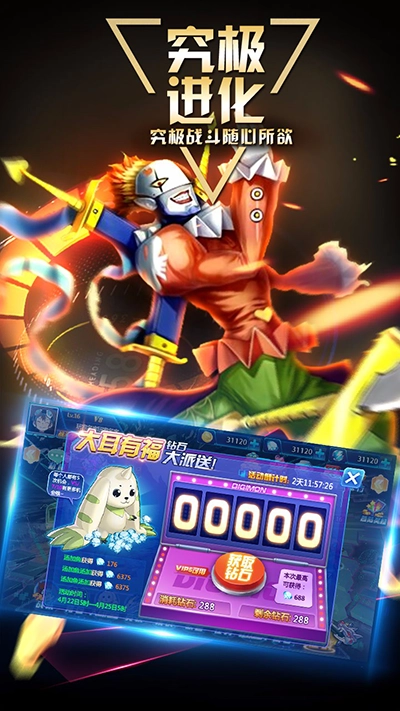《数码大冒险》是一款回合制策略游戏,果盘版作为果盘独家代理的渠道服,支持玩家用果盘账号一键登录,还能免费领取新人礼包、七日签到礼包等专属福利。游戏中,玩家可收集并培养各类数码兽,组建个性化战斗团队,参与多样冒险活动与热血对战,沉浸式体验数码世界的奇幻旅程。
