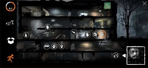 3、游戏步调由昼夜更替设定,白天,外面的狙击手迫使你留在屋内,这期间你需要好好经营藏身处;