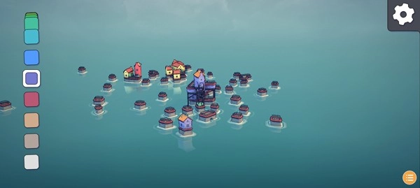 2、点击右上角齿轮按钮打开设置,点击新建,玩家可在水面上建造房屋