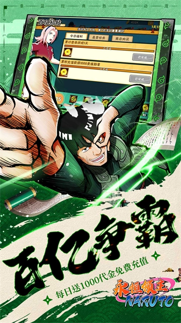 6、【在线福利】每日登录在线即可领取免费1000木叶币与200连抽机会,助力你随心组建独属于自己的传奇忍者小队。
