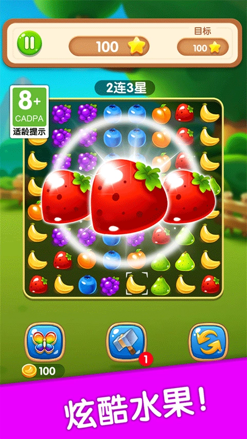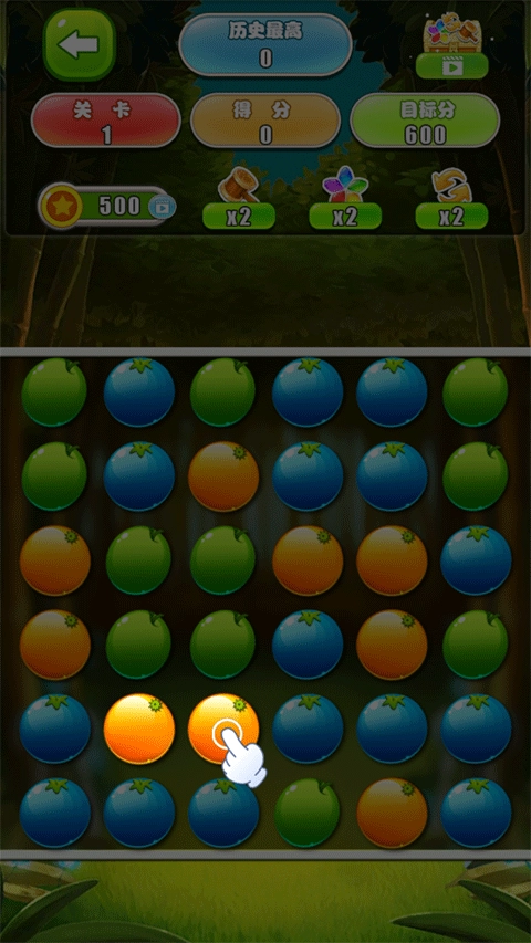 1、相邻同款水果一键爆破。