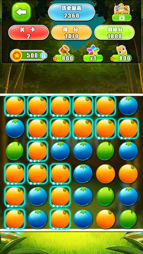3、爆破水果数量越多分数越高。